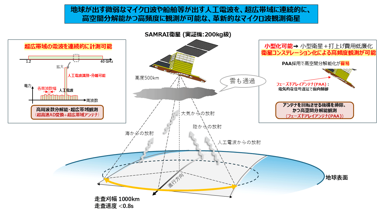 国立研究開発法人宇宙航空研究開発機構(JAXA)は、既存の計測技術で生じていた課題を解決する世界初の革新的な超広帯域マイクロ波計測技術を使用した「超広帯域電波デジタル干渉計(Scanning Array for hyper-Multispectral RAdiowave Imaging、以下「SAMRAI」)」と、その社会実装によって実現する未来社会に関するシンポジウム「安心・安全な未来を創るマイクロ波衛星 ~産学官連携が拓く、海洋デジタル未来社会と衛星観測ビジネス第3波~」を、2024年10月17日(木)にX – NIHONBASHI TOWERにて開催します。