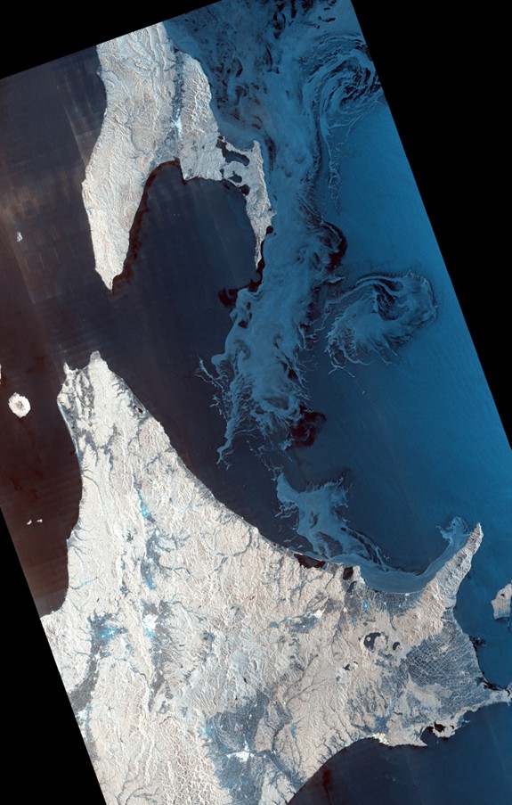 だいち2号(ALOS-2)北海道・オホーツク海の流氷 – フェーズドアレイ方式Lバンド合成開口レーダ(PALSAR-2)