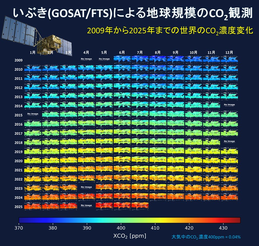 2009年から2025年までの世界のCO2濃度変化 – 温室効果ガス観測センサ(TANSO-FTS)